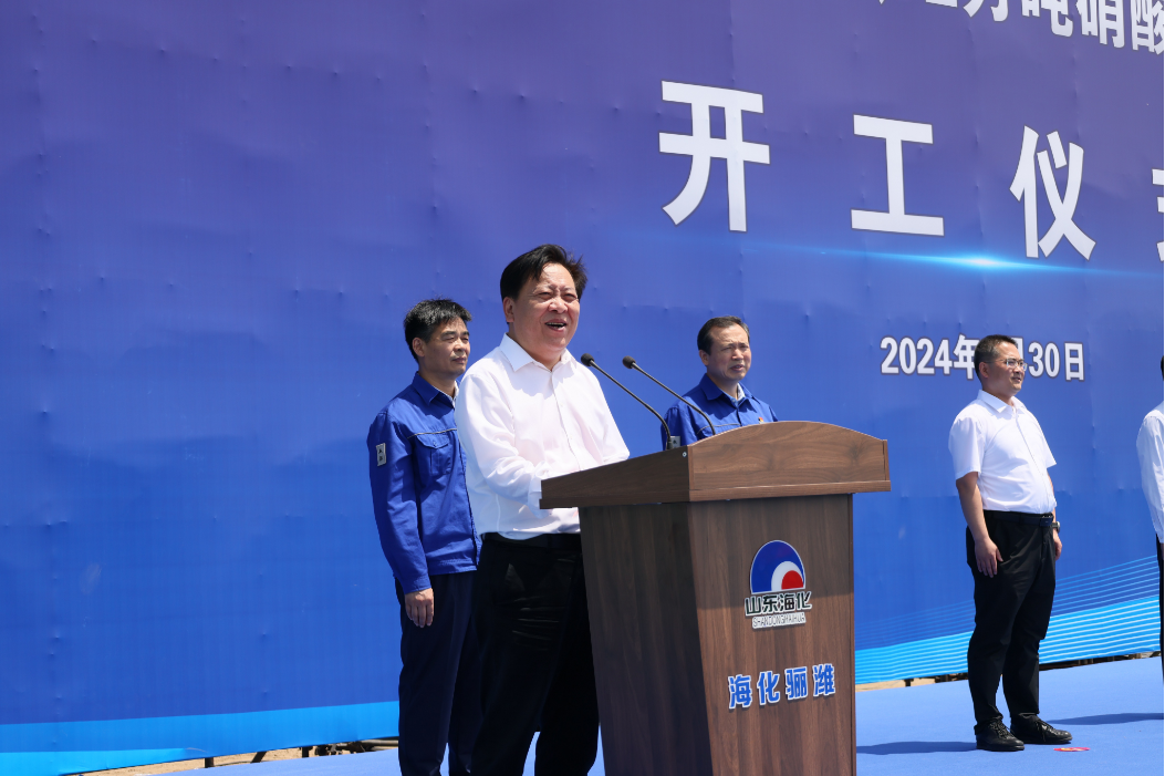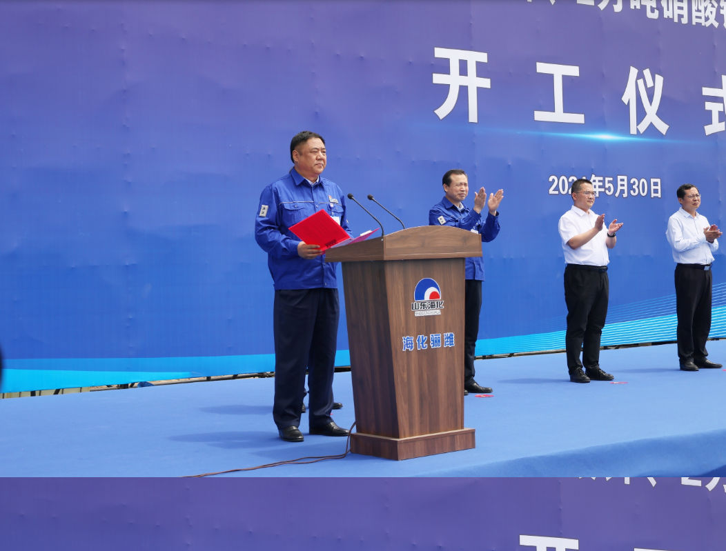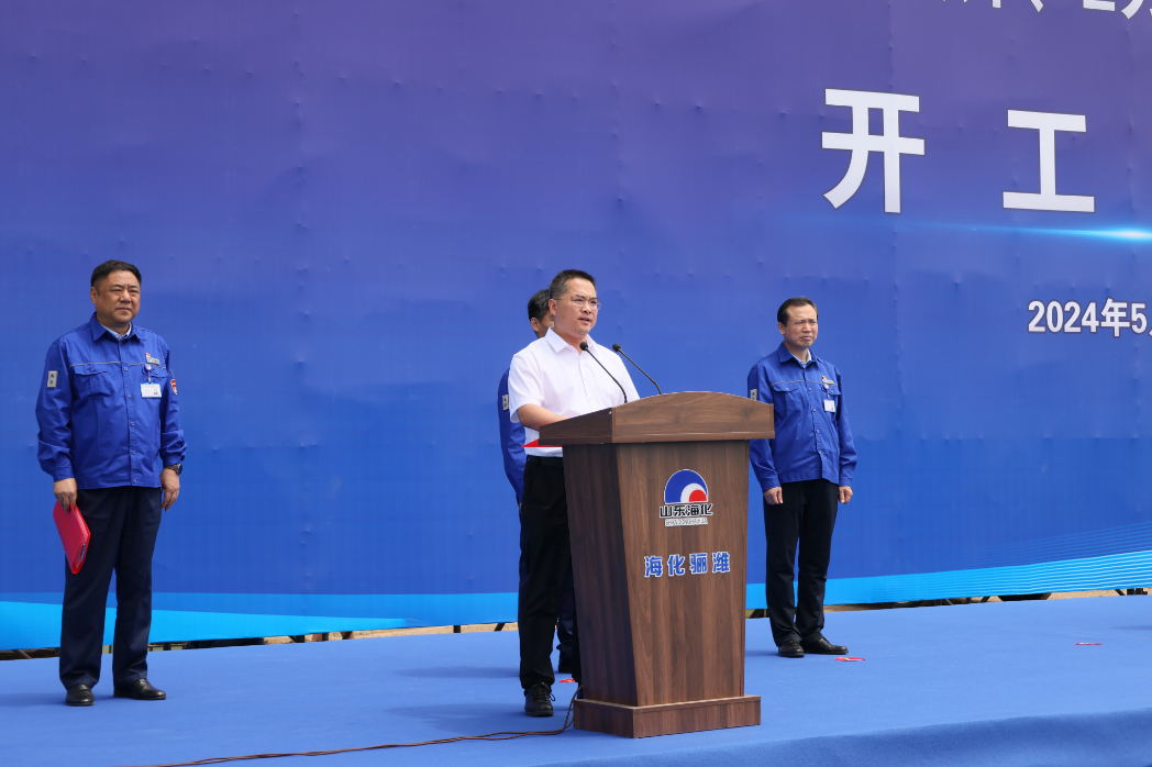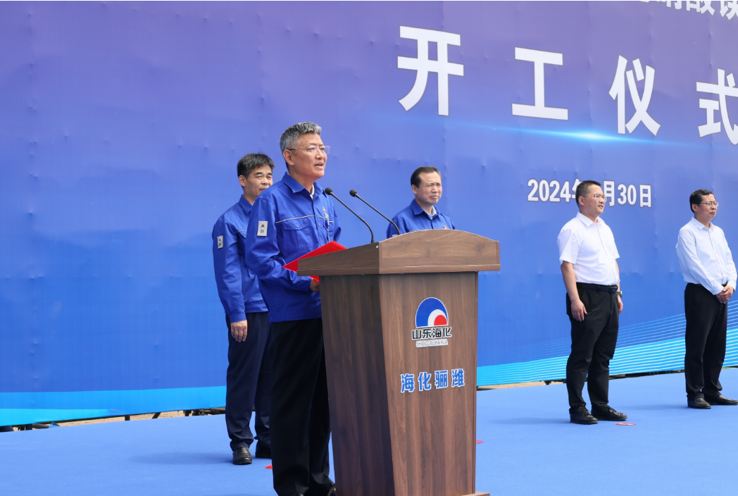市政协副主席、党组副书记王富致辞并宣布项目开工,海化集团党委书记、董事长孙令波致辞,滨海经济技术开发区党工委委员、经济发展局党组书记、局长陈强致辞,山东海化骊潍新材料公司总经理孙仿建发言,海化集团党委副书记、总经理王永志主持。